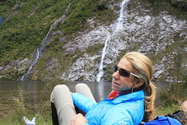 Kia Ora are the first words you hear when you arrive in New Zealand.  It means “be well/healthy” in Maori, a culture alive and well in these parts.  It sounds so much nicer than our American greeting “Hi”.  I knew it from the get go that this was going to be a great country and trip of a lifetime.  Awesome landscapes. Lush forests. And more Sheep than peeps make New Zealand a beauteous outdoor place to unwind and recharge.  We started on the North Island at gorgeous Kauri Cliffs named after the indigenous Kauri tree after crossing the date and time line and losing a day.  The setting is exquisite on Matauri Bay not far from the “Bay of Islands” where we sailed one afternoon when not golfing, hiking, biking, or  Possum Hunting!  This nocturnal national pest and our guide Darcy turned out to be a highlight for us in Kauri. A team effort and we shot 4 of them right between the eyes.  Off to the South Island to experience Queenstown and the world’s greatest wilderness regions specifically The Milford Track, known as the finest walk in the world. And indeed it was.  We were group 11 on 11-11-11,a most auspicious day to begin our 5 day 33 1/2 mile hike through the heart of Fiordland National Park (World Heritage Site) and a 4,864 square mile preserve along the coast bordering the Tasman Sea.  The Waterfalls were everywhere, streaming down the sheer granite  canyons and peaks. But the most impressive and exhilarating was the spray we got from Sutherland Falls, the world’s 5th highest.  I can still feel the mist. The water was freezing.  We walked in the footsteps of history as the “freedom walkers” did before us in 1964 and Mr Mackinnon even before them in 1888.   It’s a magnificent well run guided walk with some parts reminding me of the lushness of Washington State.  The huts we stayed were perfectly placed in nature and the guides had a real dry Kiwi sense of humor that kept us all belly laughing. Bird watching? hula hooping?  Heard we got lucky with the sunny weather in that it rains in the forest at least 200 days a year.  As tranquil as the Milford Sound was, it’s back to Queenstown for some adrenaline.  Helicopters are the preferred method of transport in NZ.  Not a moment to soon for the exhilarating shotover jet through the narrowest of canyons doing 360 degree spins. Scary shit.  The boys chose golf…ho hum.  Next up, Worldclass fishing and the boys weren’t going to miss that. Heli up and down looking for rivers to snag the trout. Luckily the guide knew how to hook em.  The food, the wine, and the people in NZ are authentic and genuine.  Auckland is worth a stop over for a couple days, especially to ferry over to Waiheke Island to enjoy brunch at the stunning wineries.  Put the Wild Kiwi country on your wish list and and make it happen.  We will live on these memories for a long time and delight in keeping the Maori traditions alive by wearing our Maori jade greenstone called Punamu. Cheers Mates!