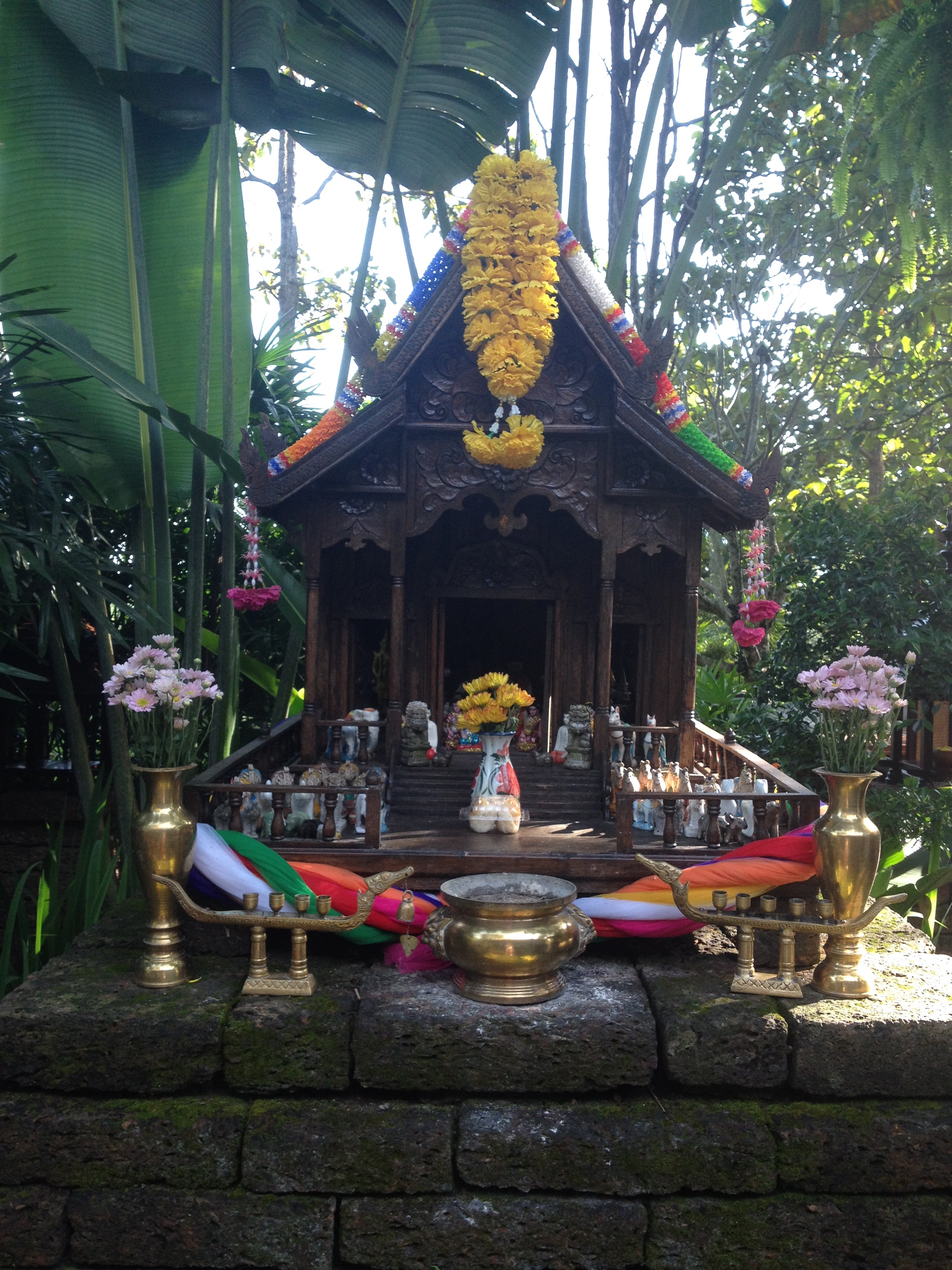 And then were 6.  How could we possibly be so far from home and not extend the journey for  4 days in Chiang Mai, the largest and most culturally significant city in northern Thailand. Just a mere connection away from Bangkok, we checked into the lap of luxury at the Four Seasons ChiangMai and that’s when we knew then this was not a STAT trip.  This was a 6 star property 20 minutes removed from the city’s land of a million rice fields and covered with its own manicured level rice fields over thousands of acres. photoIt is a world-class operation with impeccable service and we enjoyed every multiple hour Thai treatment at the spa they offered us.  They even have a photoworld-class cooking school but we were too busy having Thai massages.  We ventured off property only a hand full of times to experience some local flavor.photo   One time to hike the famous waterfall “Doi Suthep and Sankampeang” which was stunning…just look at the picture!  Another to shop of course in the local food and night markets where our guidephotophoto emphatically told us that Thai people eat everything from the ground except cars, everything from the sky except planes and everything from the water except submarines!  We even took in an authentic Muay Thai photoBoxing match in the heart of the city with the locals. That was quite an experience watching women kicking each other in the face for fun.  But a most memorable experience was findingphoto Rose’s yoga Studio and taking a 3 hour class. It was heavenly and it certainly lived up to its name since ChiangMai is often referred to as the Rose of the North for its beauty and spirit.  It’s a very peaceful place to visit and take in the friendly disposition of the Thai people saying Sawatdee (hello) at every passing glance. Spirit houses were everywhere in photoChiang Mai as they serve as a shrine to the protective spirit of the place.  I even tried to buy one to bring home but I don’t think it would go over well in front of my house.  I’ll stick with the mezuzah.photo