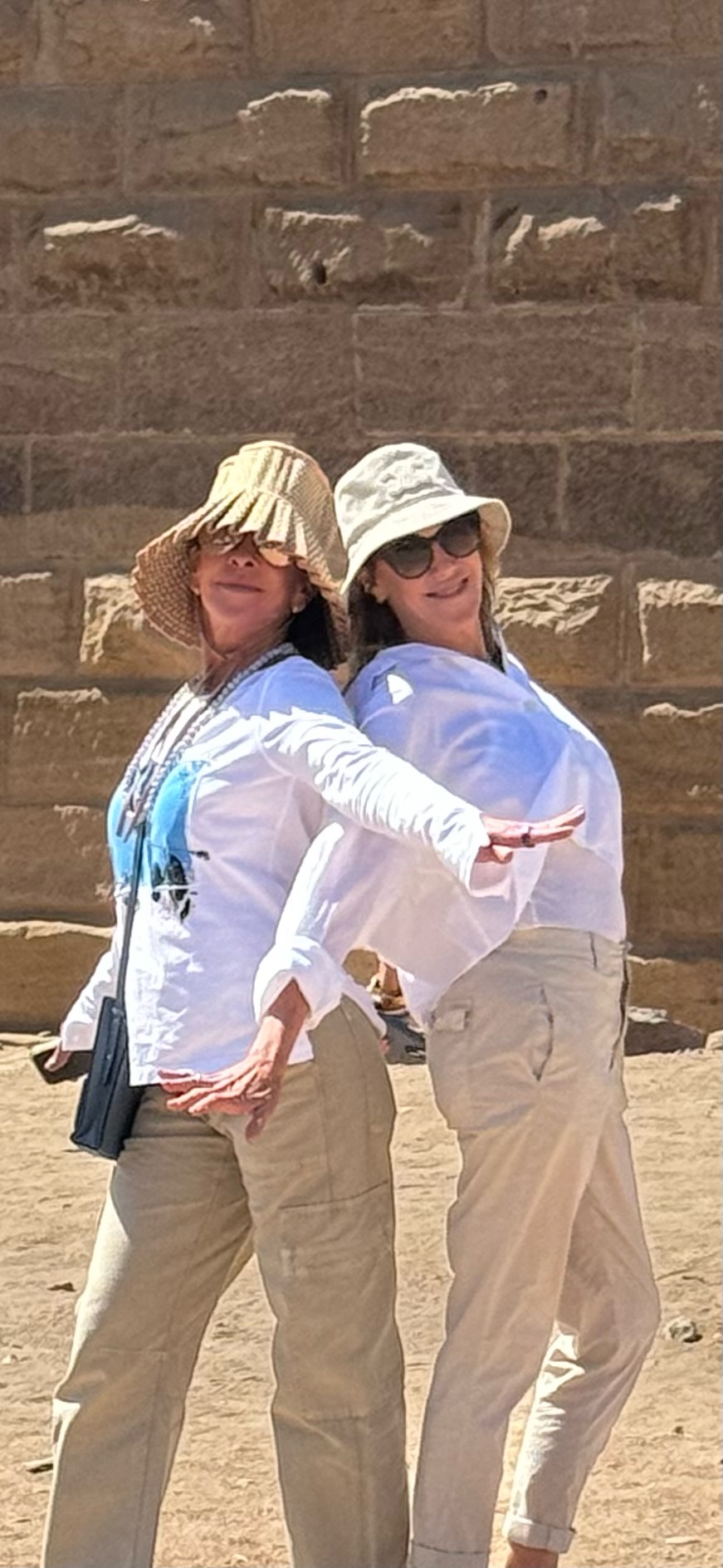 We experienced it all together as a perfect dynamic group. Between our egyptologist guide Wael, our (unnecessary) security detail, and our trip organizers at A&K, we were well looked after ensuring beyond a smooth journey through this ancient world. “Your wish is my command” was taken to the next level with pure Egyptian hospitality. It was a dream come true to witness the monumental Great Pyramids of Giza by helicopter and then be able to get close enough to absorb the scale. We all felt the connection to the divine beyond the historical use as tombs or at least we felt “pyramid power.” The size alone can transform you to a place of wonder… as it was built over 4500 years ago as giant tombs for mummies of the pharaohs Khufu, Khafre and Menkaure who were father, son and grandson.