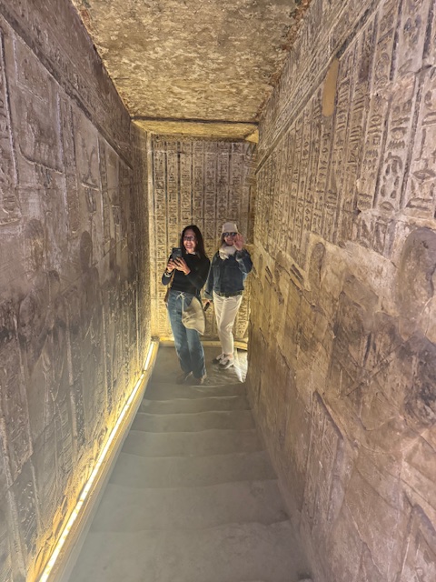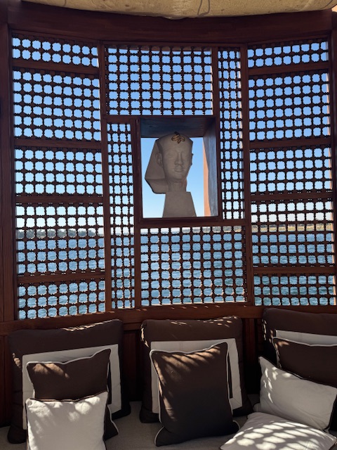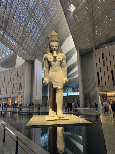 All my prior planning to visit Egypt were perfect foil as I would have never been able to see the brand new Grand Egyptian Museum (GEM) that just opened its doors after 20 years in the making. For the first time in history, the entire treasure of Tutankhamun is displayed together in one place. It was such a treat to see more than 5000 objects from his boy tomb especially the jewelry. After all, he only ruled for 9 years and he died before 20 yet his tomb became the most famous archaeological discovery in history as we learned in the Valley of the Kings. One of the most poetic elements of the Museum in retrospect is its alignment with the pyramids itself as I looked and photographed them from the enormous glass walls inside.