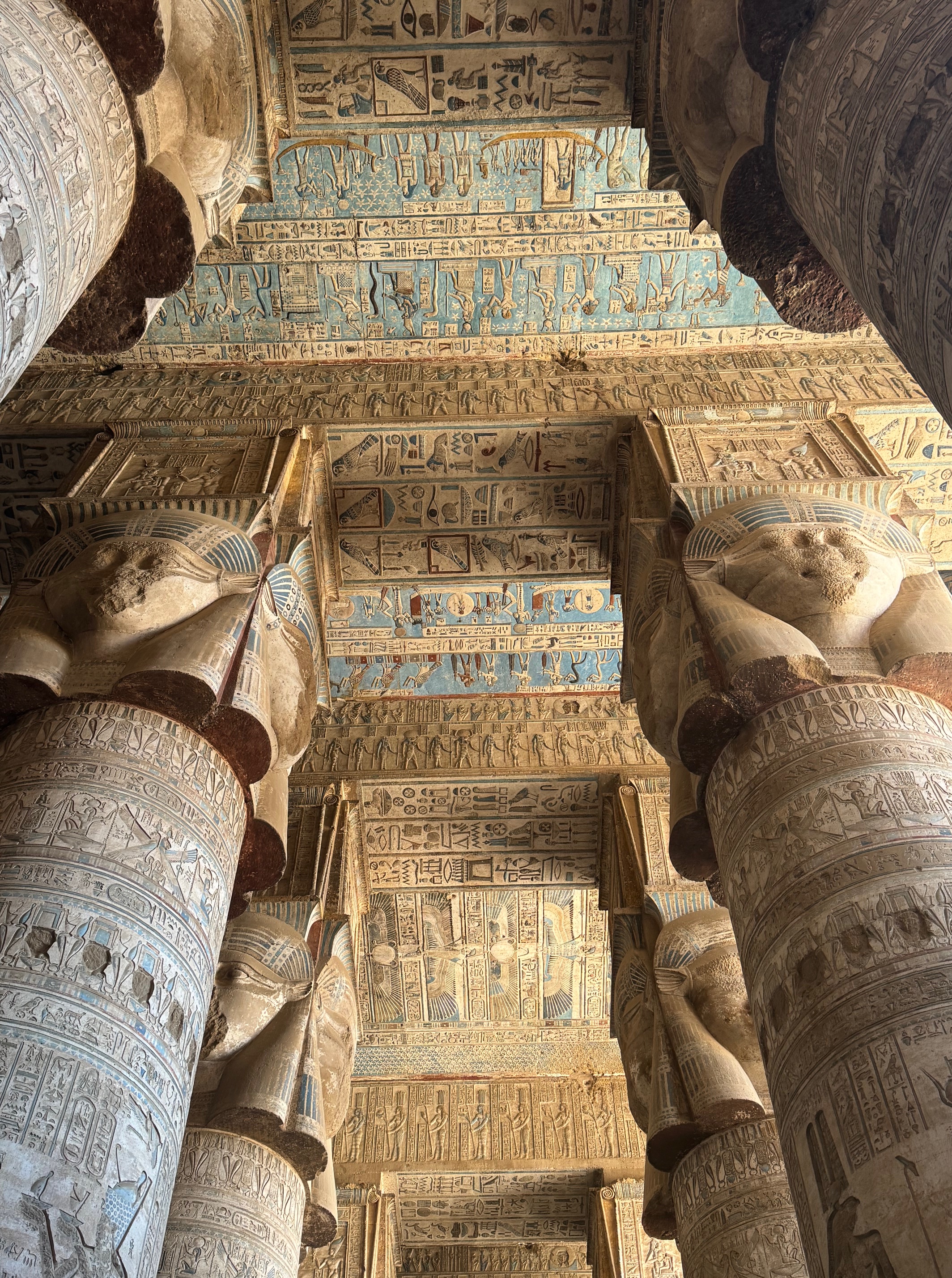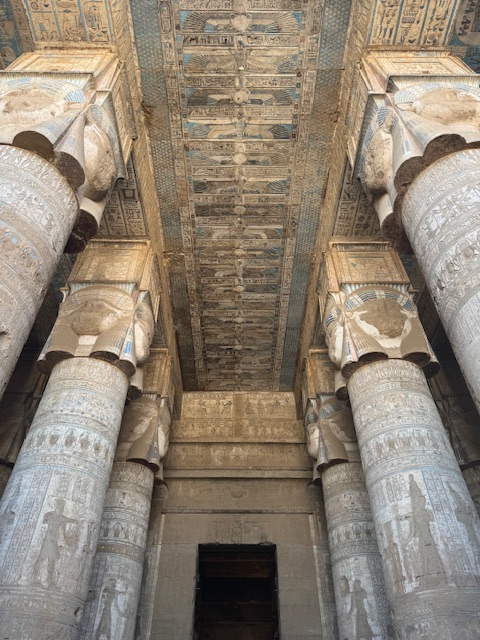 Our last long drive was to honor the goddess Hathor at temple of Dendera. She enjoyed great devotion in her life as the deity of maternal and family love, beauty and music. My kind of life! The greeks associated her with aphrodite in that she is portrayed throughout with a cow head or cow ears. A lot to see and learn and hopefully retain long after I return home from this magical place.